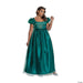 Bridgerton fans will be delighted to look just like Penelope Featherington when wearing our Classic Penelope Costume! Features a lovely, full-length, high-waisted gown in rich teal satiny fabric with a sheer overlayer on the puffed sleeves and the full skirt. The bodice has printed sparkle accents, and sheer ruffle trim on the shoulders. Shoes are sold separately. Made of polyester. Spot clean with damp cloth, air dry. Do not bleach, do not dry clean.