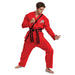 From the popular Cobra Kai series! Become a member of Johnny's Eagle Fang Dojo when you wear this Eagle Fang Adult Costume! The brilliant red wrap shirt with black trims has the Eagle logo showing front and back. Includes matching pants and belt. Made of 100% polyester. Hand wash cold. Do not bleach. Line dry. Cool iron if needed. Do not dry clean.