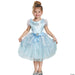 Your little princess will look adorable in this lovely Cinderella costume! Our classic Cinderella costume features a beautiful, pale blue satin dress with full, multi-layer tulle skirt, sheer puffed sleeves and a waist bow detail with a Cinderella character cameo. The dress has a hook and loop closure on the back. Great for Halloween and for hours of fun, dress-up play afterwards! Shoes are not included. © Disney.