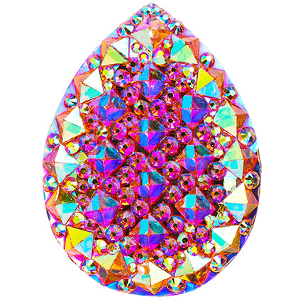 Resin Sew-On Gummyspike Drop 30x40mm Aurora Borealis