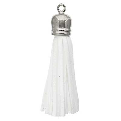 Faux Suede Tassels Silver Cap 5.5cm (4pcs)
