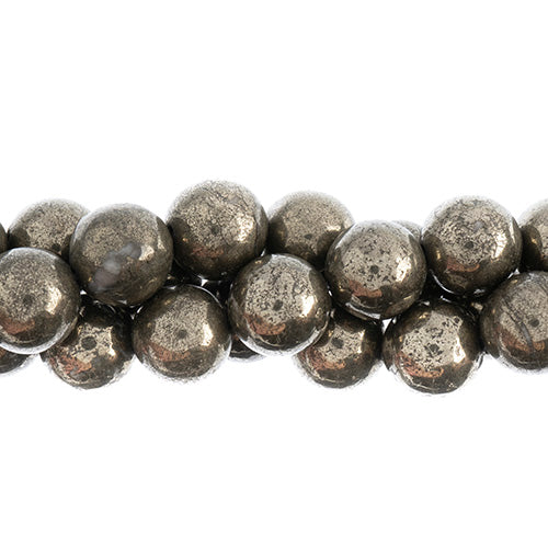 Approx 17 pcs per strandColor: PyriteSize: 10 millimetersMaterial: Semi-Precious PyriteShape: Round Opacity: Opaque