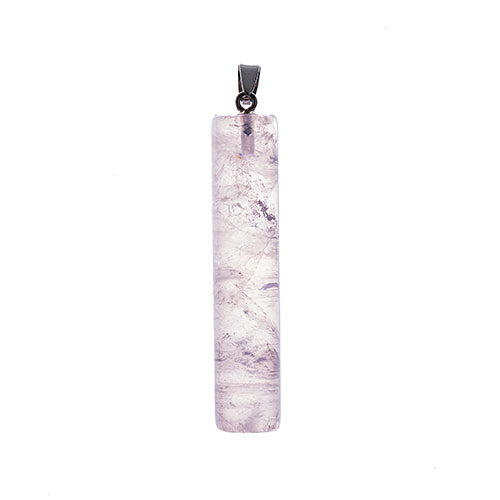 Semi-Precious Pendant Approx 12x55mm Rose Quartz W/ Imitation Rhodium Plated Clasp