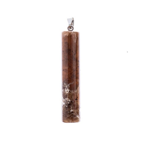 Semi-Precious Pendant Approx 12x55mm Tiger Eye W/ Imitation Rhodium Plated Clasp