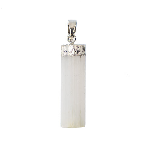 Semi-Precious 10x35mm Selenite Cylinder Cap Pendant with Bail Eco Plated