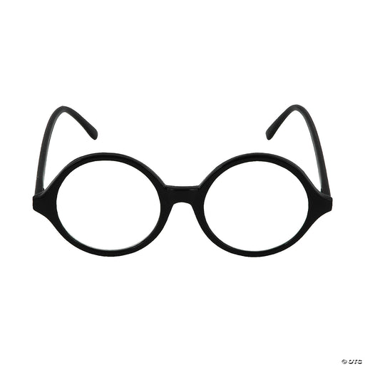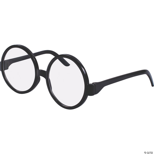 If you wear these glasses, you might look smarter than you actually are! Black/clear. Round plastic frames with plastic lenses. One size fits most.