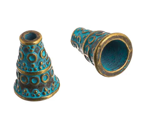 Metal Bead - Carved Cone 7x10mm Patina Finish