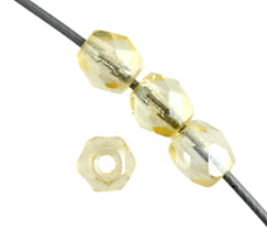Czech Fire-Polished Round 4mm - Transparent Yellow/Brown Strands