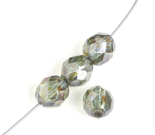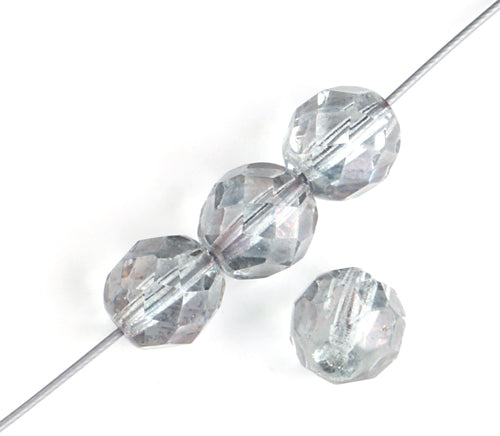 Czech Fire-Polished Round 4mm - Transparent Crystal/Grey Strands