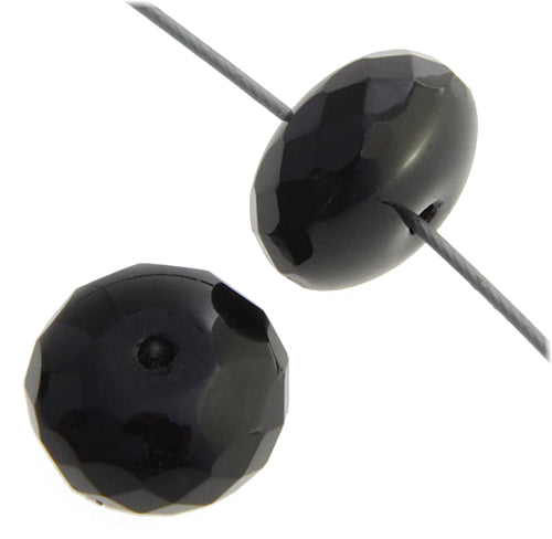 Fire-Polished Flat Cut Round 10mm Opaque Jet/Marble Edge