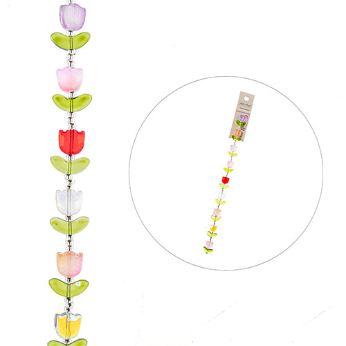 Crystal Lane DIY Flower 7in Bead Strand Tulip 14x16mm 9pcs