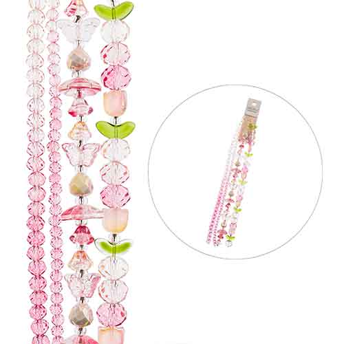 Crystal Lane DIY Flower 7in Bead Strand Rose,Tulip, Flower Mix