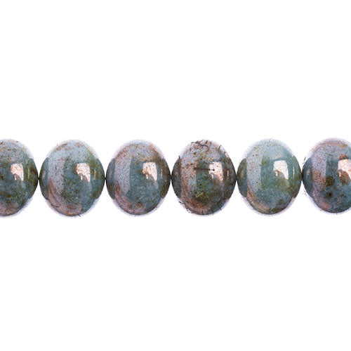 Czech Candy Oval 2 Holes Green Turquoise Gold Speckled