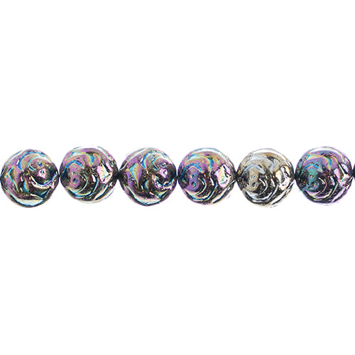 Czech Candy Rose Beads 2-Holes Black/Red Iris