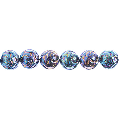 Glass Bead Flower 12mm Blue/Steel Grey Strung