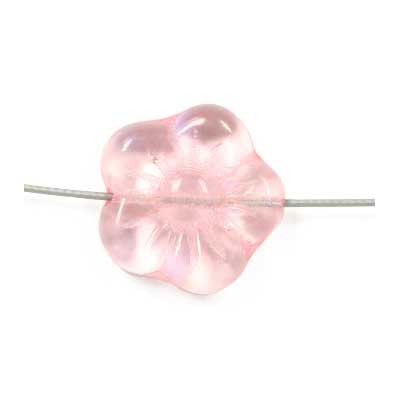 Glass Flower Bead 15mm Crystal/Pink Strung
