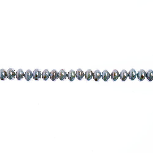 Czech Candy Oval 2 Holes Opaque Blue Turquoise Silver Speckled