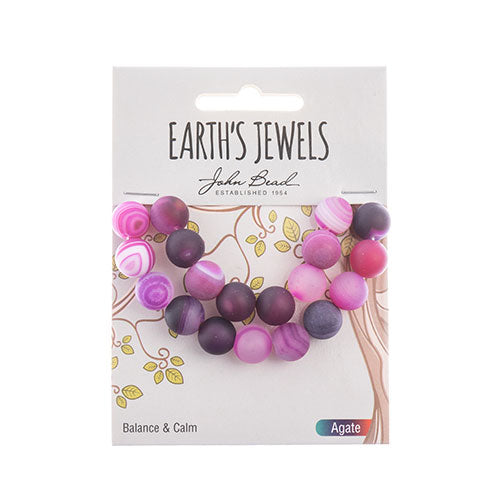 Earth's Jewels Round Beads Matte Striped Agate Pink