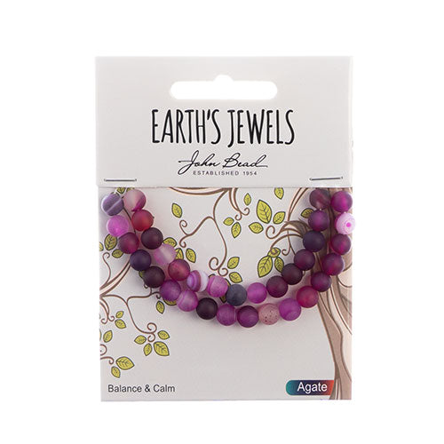 Earth's Jewels Round Beads Matte Striped Agate Pink