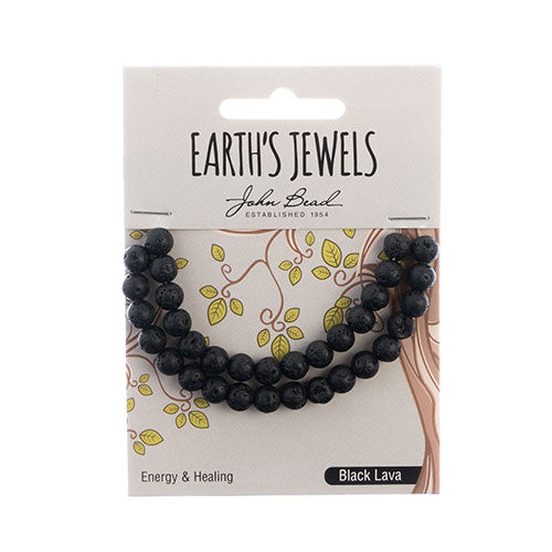 Earth's Jewels Round Beads Matte Black Lava Natural