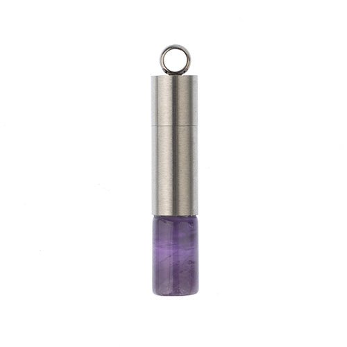 Semi-Precious Aroma Gems Stainless Steel Top Cylinder Pendant Amethyst