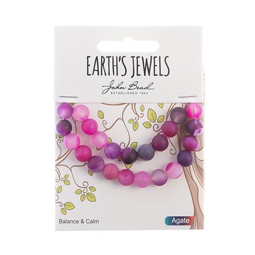 Earth's Jewels Round Beads Matte Striped Agate Pink