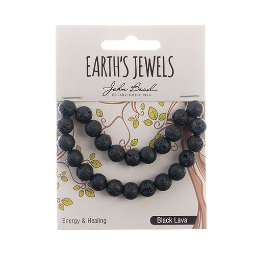 Earth's Jewels Round Beads Matte Black Lava Natural