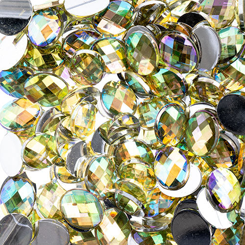 Acrylic Oval Flat Back Rhinestones 10x14mm Aurora Borealis 200pcs/Bag