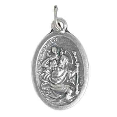 Religious Pendant St. Christoph Pray For Us Nickel With Ring