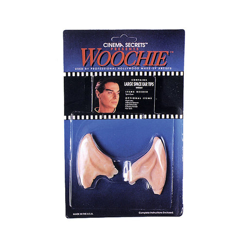 Flesh colored ear tips. Small are 2 inches tall and Large are 3 inches tall. Adhesive not included.