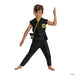 Cutest Karate Kid on the block! Our Cobra Kai Toddler Costume - includes a black top with the yellow Cobra Kai symbol and yellow trim, matching black pants, and black belt. Made of 100% polyester. Hand wash cold. Do not bleach. Line dry. Cool iron if needed. Do not dry clean. TM & © 2022 SPT. All Rights Reserved.