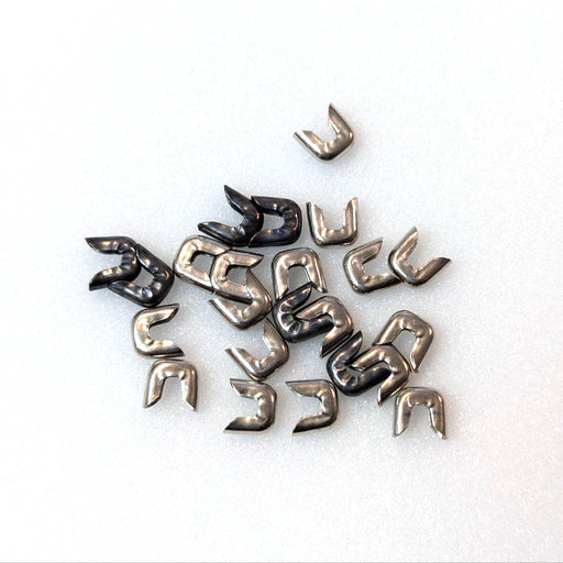 Per Dozen. U-shaped tips to cover the cut ends of 1/4" spiral steel boning. Use 2 pairs of small pliers to crimp onto your boning. Keeps the cut e...