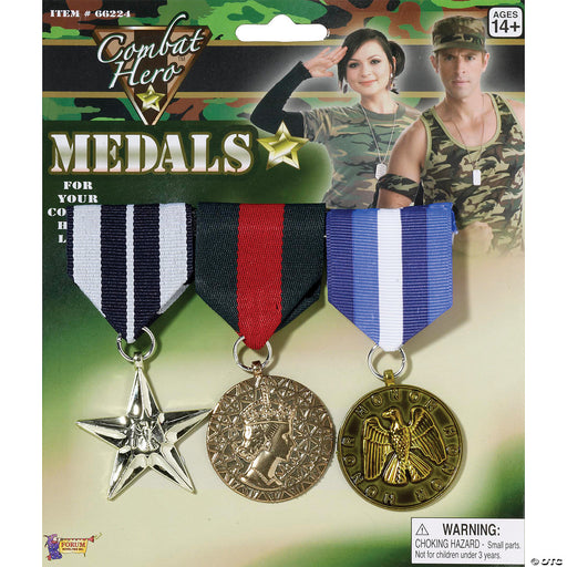 Forum NoveltiesIncludes: 3 costume medals. Our Military Medals Accessory Set includes 3 medals to complete your costume's combat hero visage. A gold star, silver ...
