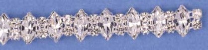 Per MeterColor: Crystal Size: 15x7mm navette with 4mm round stoneMetallic: SilverS