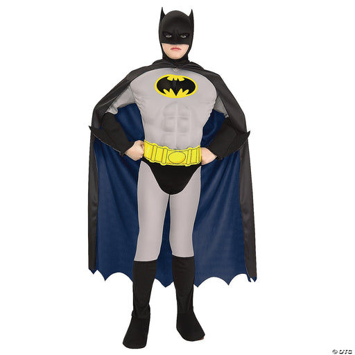 Rubie'sThe muscle-chest jumpsuit features the strong profile of Batman with a classic Batman logo and matching boot tops. The ensemble comes with a matchi...