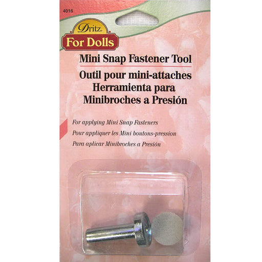 Includes metal tool and pad. Applies mini snap fasteners for dollmaking.