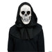 You can't miss with this super scary Reaper Horror Mask with Black Shroud! Soft white PVC skull half mask has an attached black shroud for a complete effect. Just add your own black robe or black shirt and pants for a frightening look. One size will fit most adults.