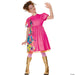 Live out your dream of becoming a real life Barbie this Halloween with this officially licensed Barbie The Movie Costume! Our Weird Barbie Costume features a pink dress with lots of printed odd markings down one side. Puffed sleeves and a sheer ruffled hemline add cute details. Made of polyester. Spot clean with damp cloth, air dry. Do not bleach, do not dry clean. Gold boots and glasses are sold separately. ©2024 Mattel. © Warner Bros. Entertainment Inc. All rights reserved. (s23)