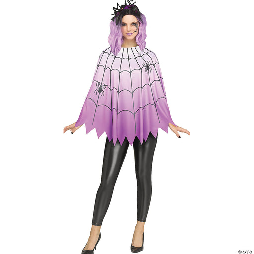 Fun WorldOmbre synthetic poncho with printed spider designs. One size fits most adults.