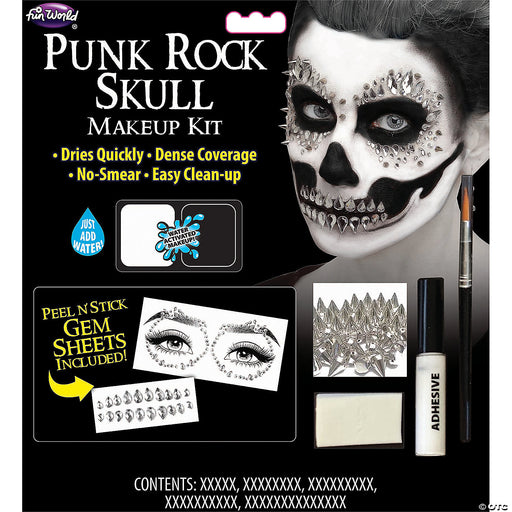 Fun WorldPunk Rock Skull Makeup Kit - includes black and white water-activated makeup, adhesive, and gems