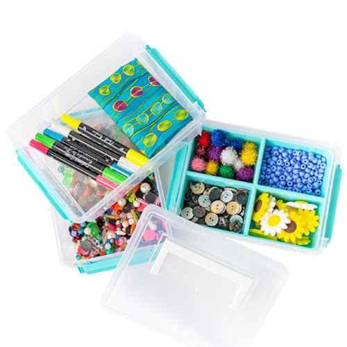 Clear Boxes w/ Turquoise Detail Size: 10x7x2.5 InchesMaterial: Plastic
