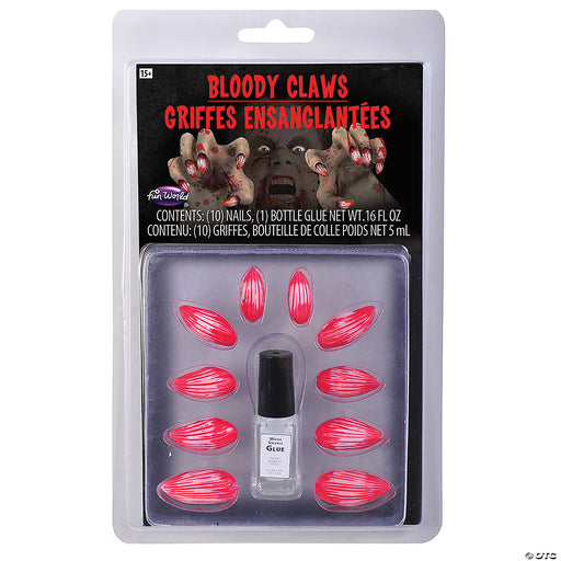 Fun finishing touch to your Halloween ensembles! Glue-on Claws Kit comes with 10 false nails and a 0.16 oz. bottle of water-soluble glue.