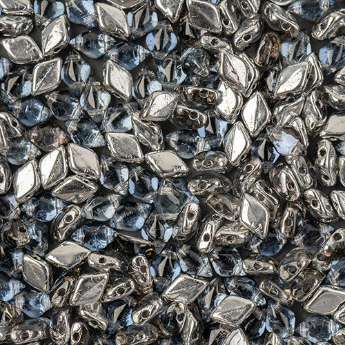 Matubo Czech Gemduo 2-Hole 50g Silver Splash