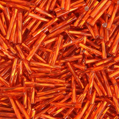 Czech Twisted Bugles Silver Lined Orange