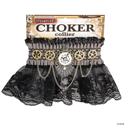 Forum NoveltiesA pretty addition to your Steampunk look! Includes; Black ruffled lace choker with attached gears, chains, and an imitation clock face for decorati...
