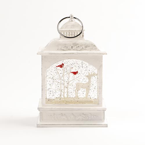 Christmas Snowglobe Lantern With Reindeer & Cardinals 8 Inches