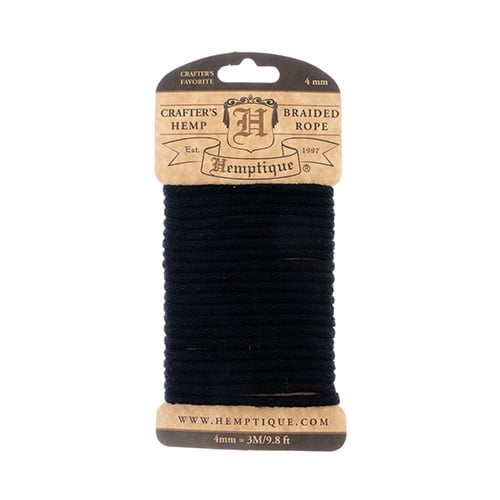 Hemp Rope Braid Cord On Card 20lb 4mm 3m/9.8ft Black