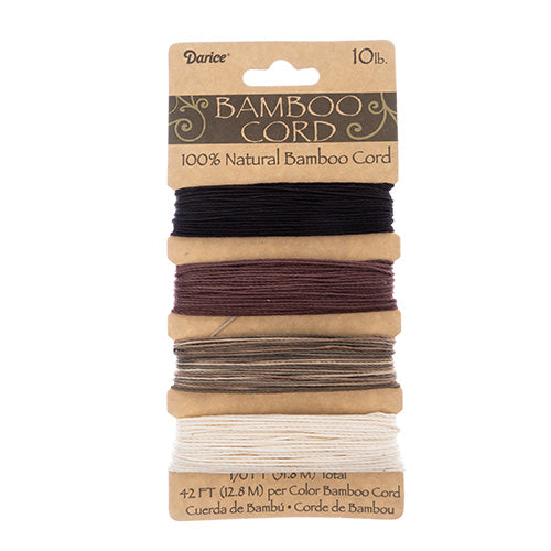Bamboo Cord on Card 0.5mm 10lb 4 Colors x 12.8m/42ft Each Earthy Colors