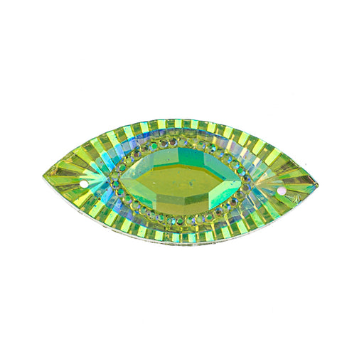 Resin Sew-On Gummyspike Navette 20x40mm Aurora Borealis