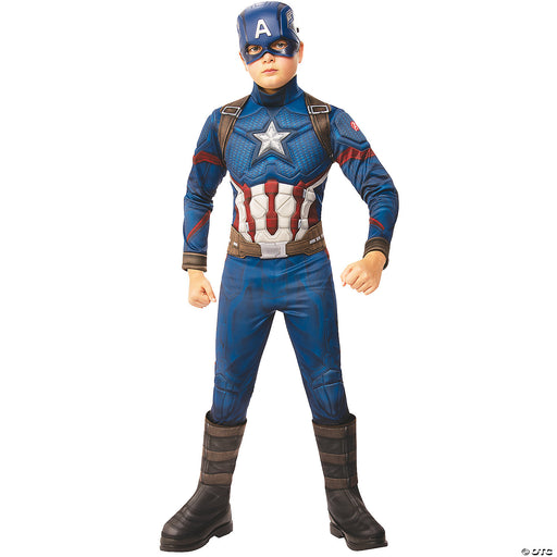 Rubie'sNow your child can become Captain America from the blockbuster movie Avengers: Endgame! Costume includes Padded jumpsuit with attached shoe covers ...